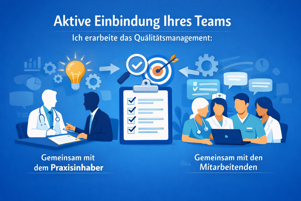Qualitätsmanagement beschreibt die systematische Organisation aller Abläufe in Ihrer Praxis, mit dem Ziel, eine gleichbleibend hohe Qualität sicherzustellen und kontinuierlich zu verbessern.